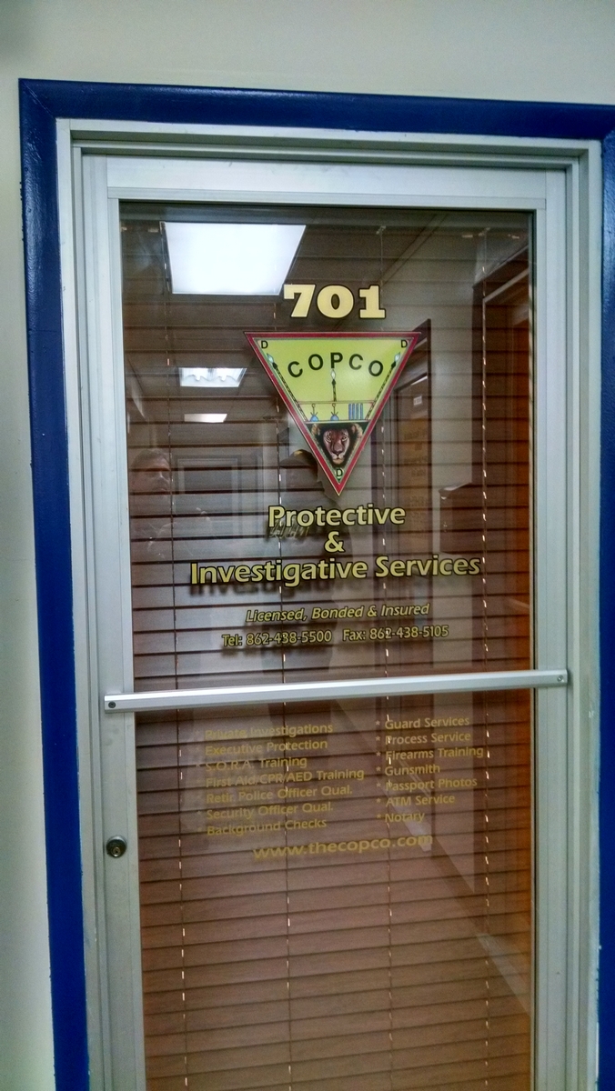 - This is a custom multi-color door glass sign and lettering by NJ Sign Company, Advertising Unlimited